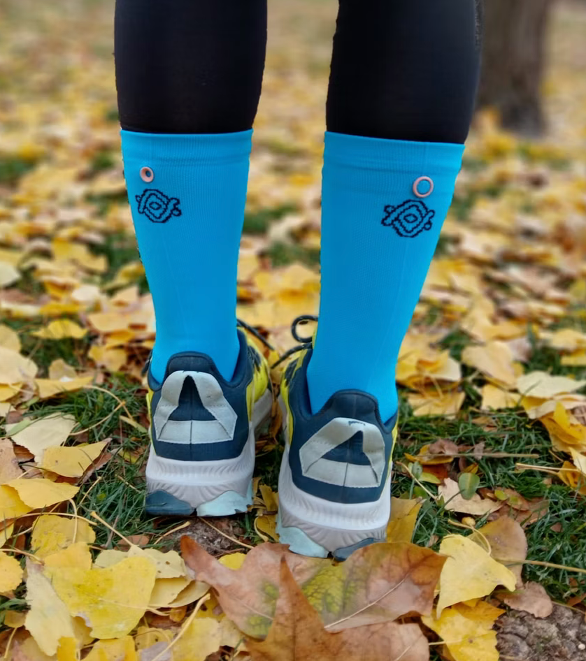 Olvídate de perder calcetines. Nuestro sistema de unión trasero funciona como un clic rápido y resistente, unes tus Cabukis al acabar el entreno, los metes juntos a la lavadora y los tiendes de la misma forma.