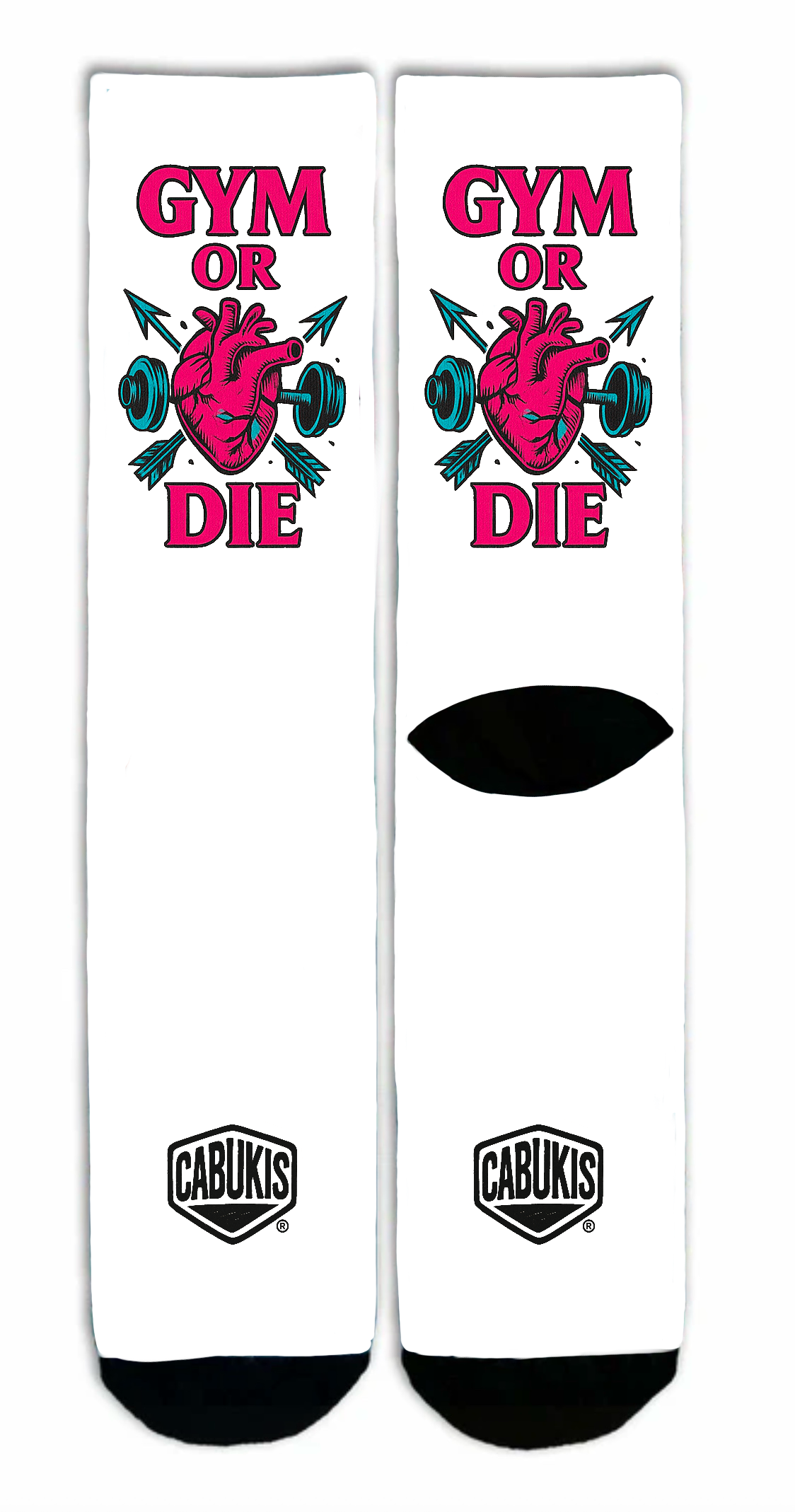 El modelo GYM OR DIE de Cabukis está diseñado para quienes viven el entrenamiento como un estilo de vida. Con un potente gráfico de corazón anatómico atravesado por pesas y flechas, estos calcetines transmiten fuerza, disciplina y pasión por el fitness. Su base blanca con puntera y talón en negro refuerza el contraste y los convierte en un complemento llamativo y motivador dentro y fuera del gimnasio.