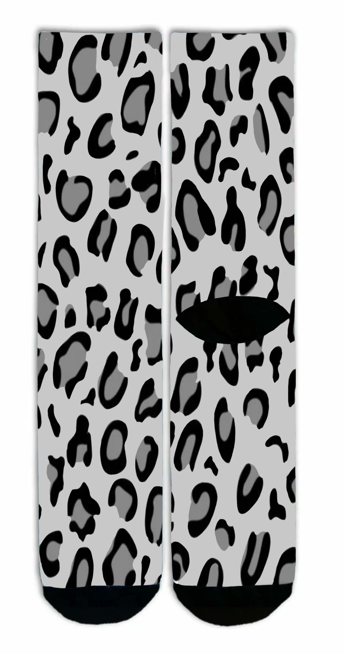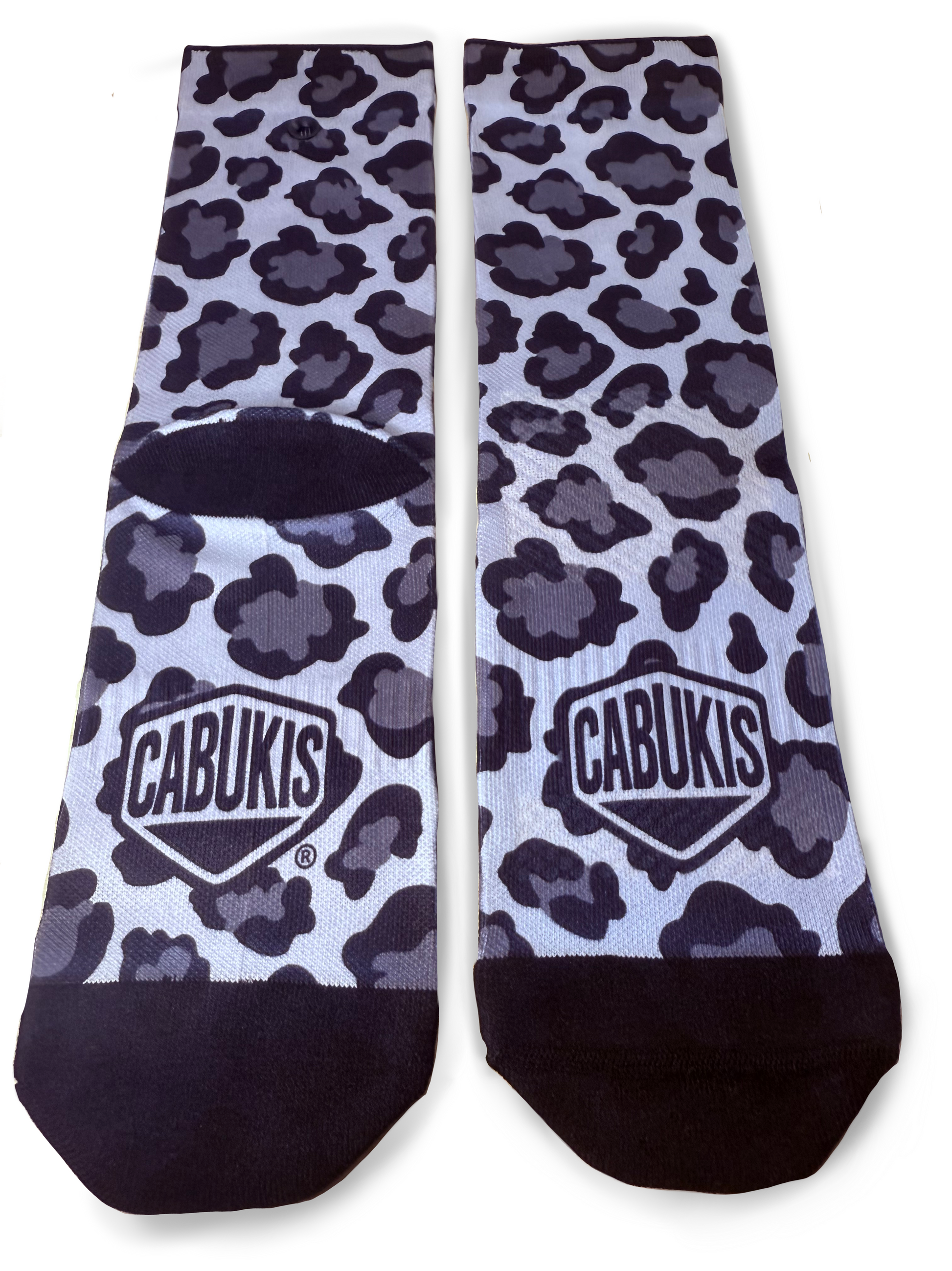 ¡Huellas de Poder! El diseño de leopardo en gris y negro te da un look atrevido y divertido. ¡Parecerá que corres como un leopardo de verdad!